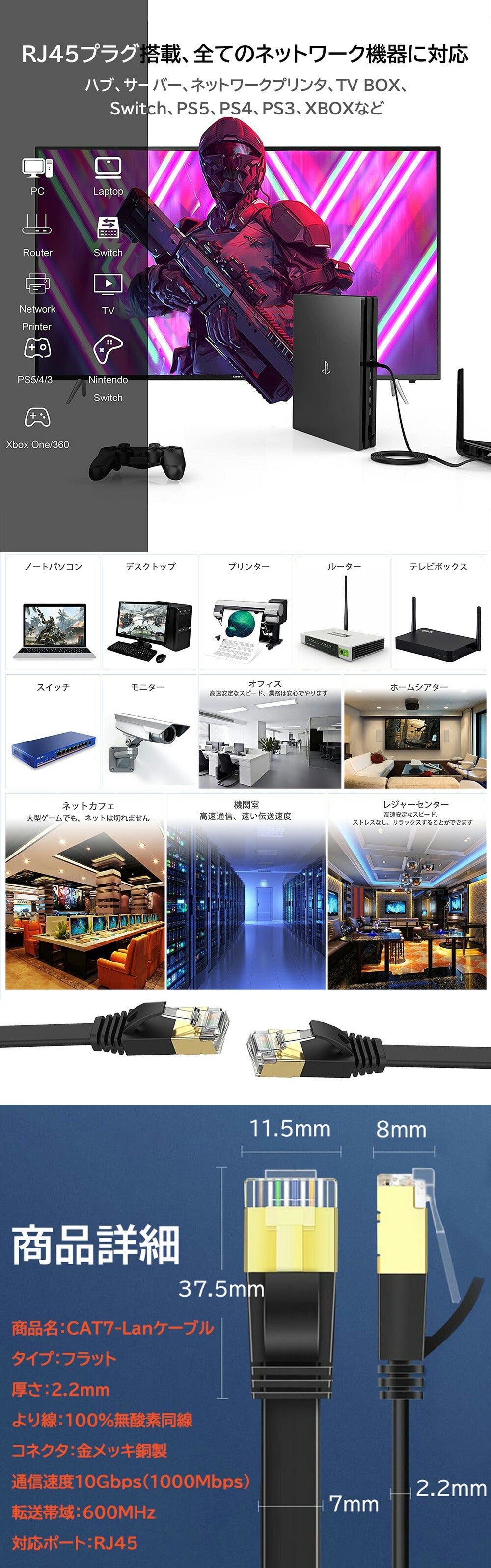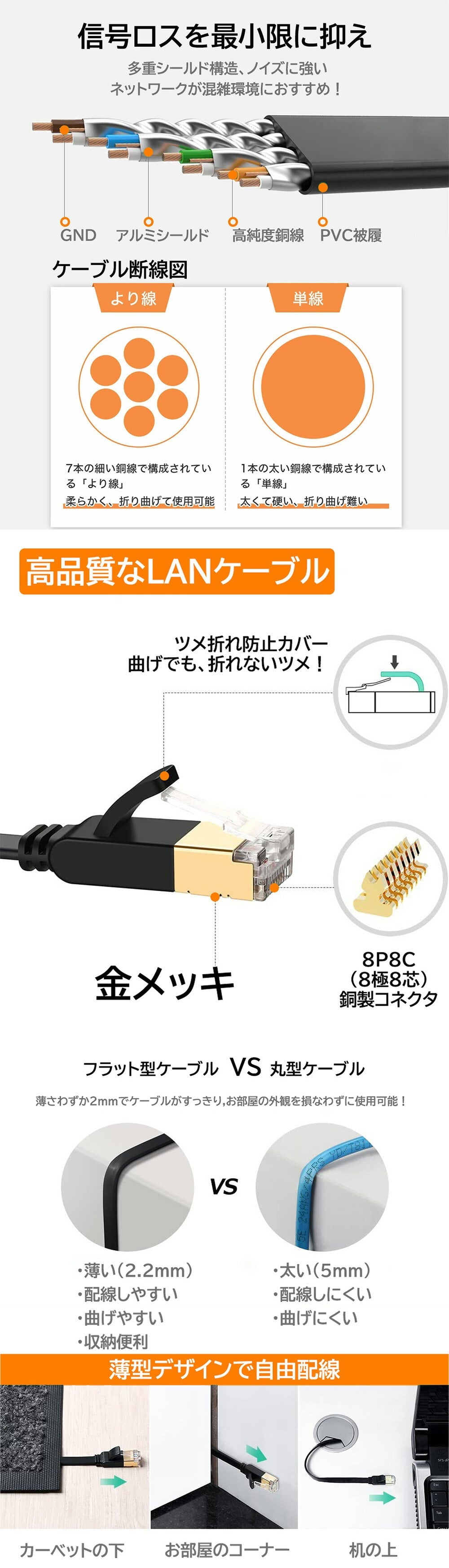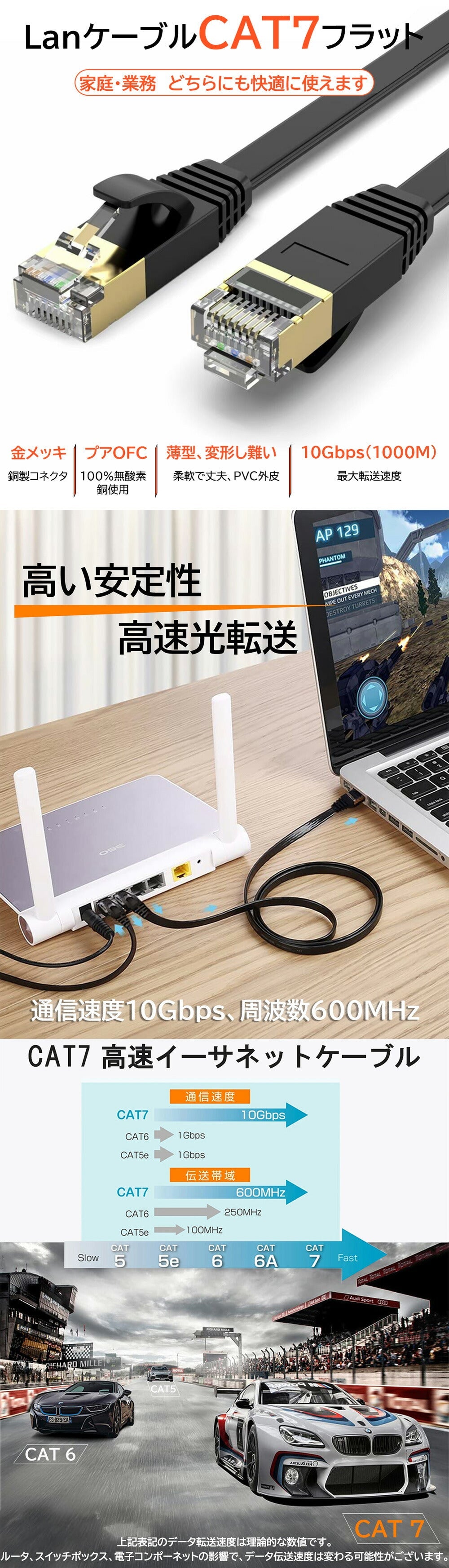 LANケーブル 10m 30m 25m 20m 15m 5m 3m 2m 1m cat7 高速安定 フラット 厚さ2mm 企業用 ランケーブル カテゴリー7 家庭用 サーバー インターネット ケーブル switch/PS4/PS5 パソコン用 ゲーム オンライン ツメ折れ防止 zoom テレワーク ツメ折れ防止カバー